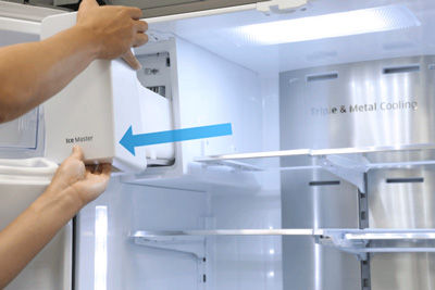 Most refrigerator doors can be changed to open in the other direction. How do i repair and tighten the door handle on my refrigerator and freezer doors to get them secure? This is useful when you are trying to fit the refrigerator into a space that take off the grille at the bottom of the refrigerator. This procedure will vary depending on the make and model of your refrigerator. If it has a water dispenser, locate the reservoir, which should be behind the open the second box and leave it in the freezer.